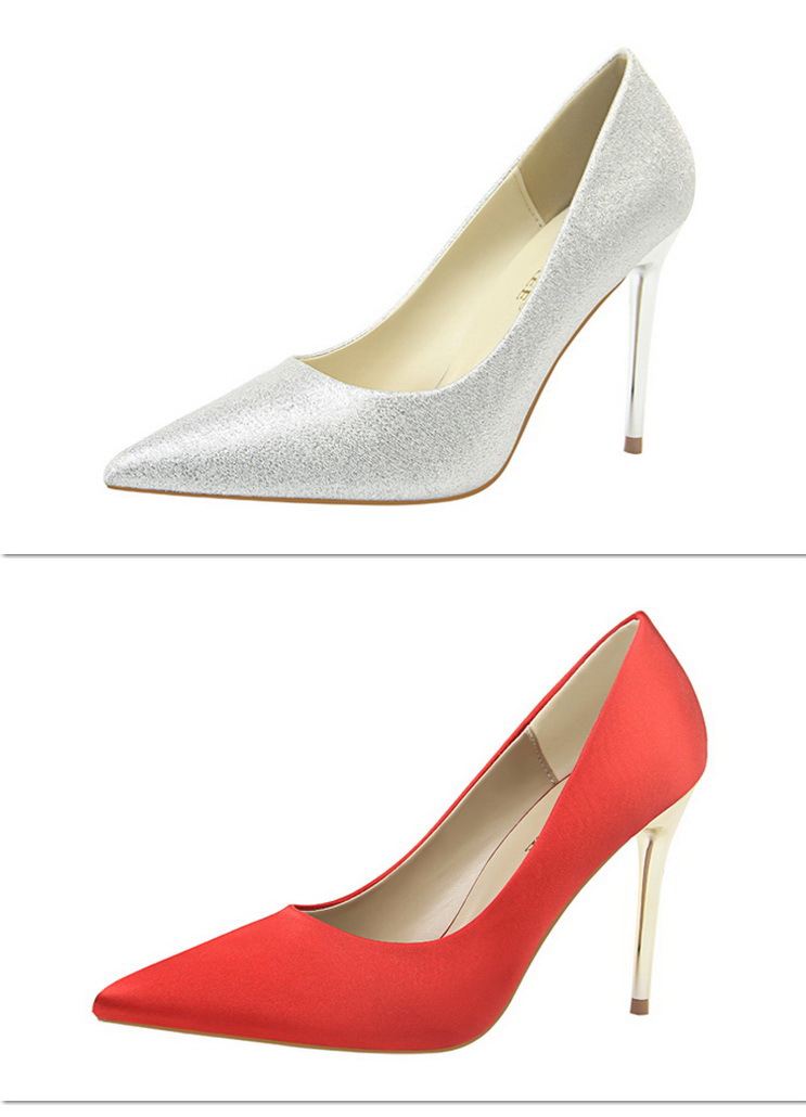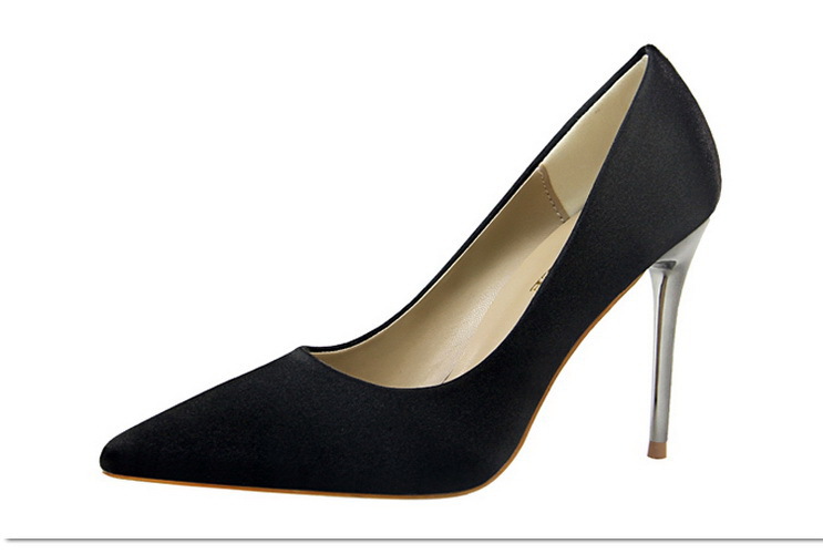 欧美风时尚简约女鞋高跟绸缎浅口尖头性感夜店单鞋高跟鞋