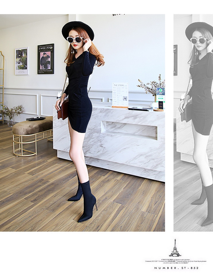 欧美简约女靴细跟性感夜店修脚显瘦尖头莱卡弹力短靴