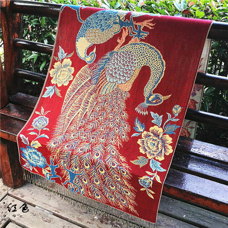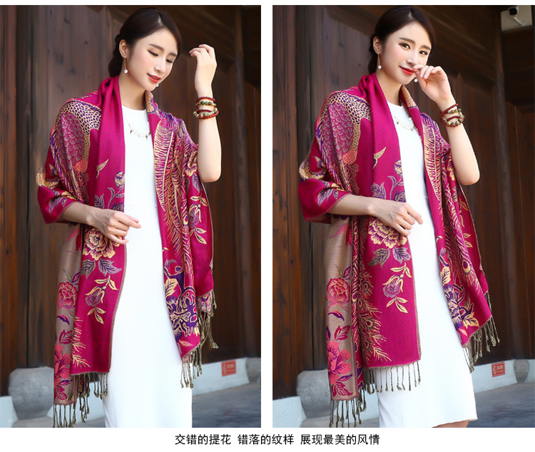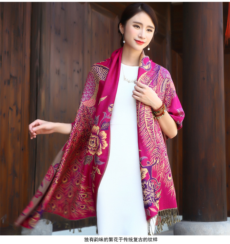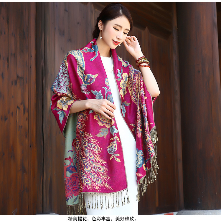 秋冬云南民族风新款孔雀羽毛花女长围巾披肩夏季防晒空调披肩