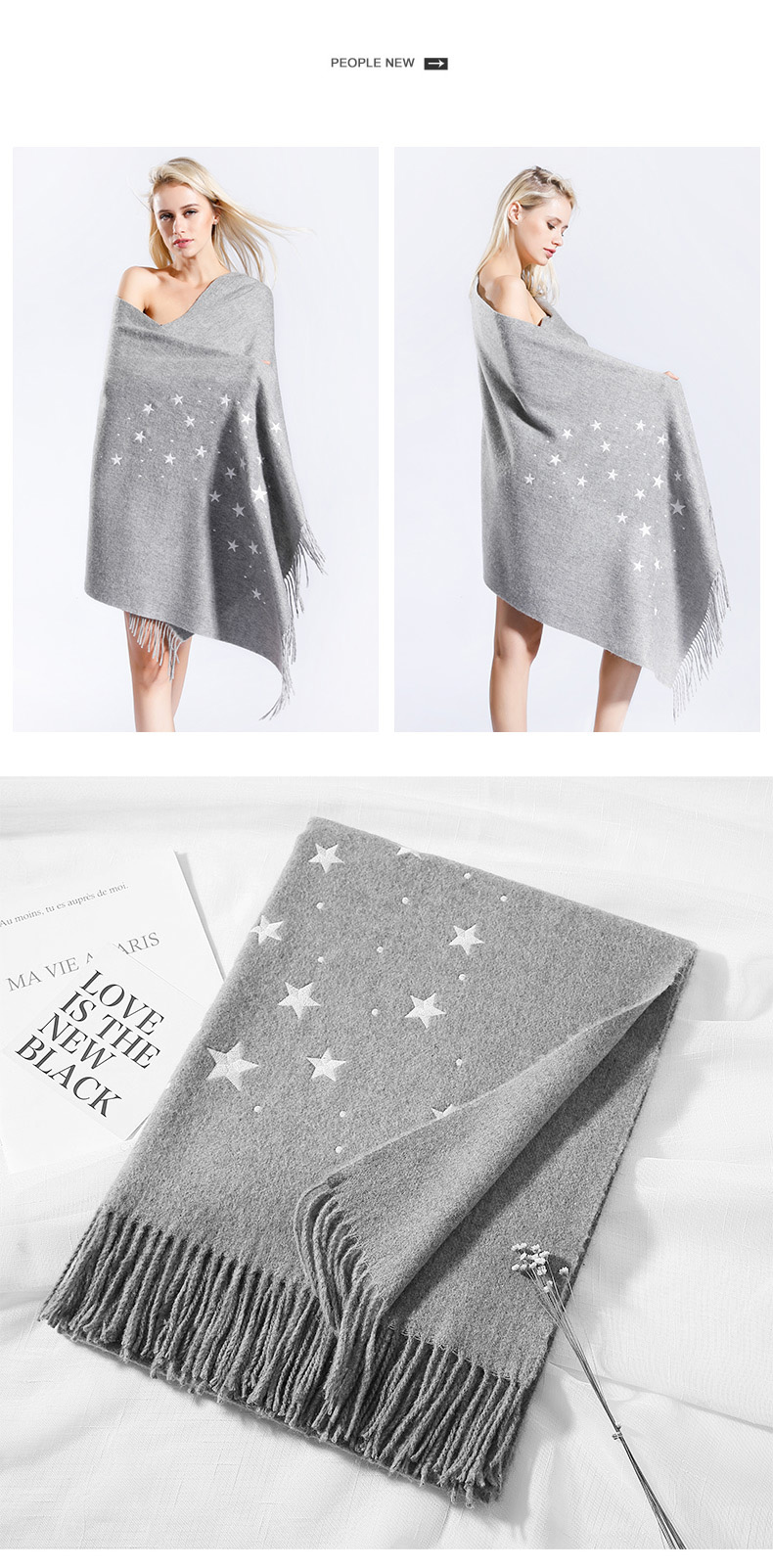 澳洲星空羊毛围巾秋冬空调披肩保暖长款百搭亲肤遇光变色刺绣星星
