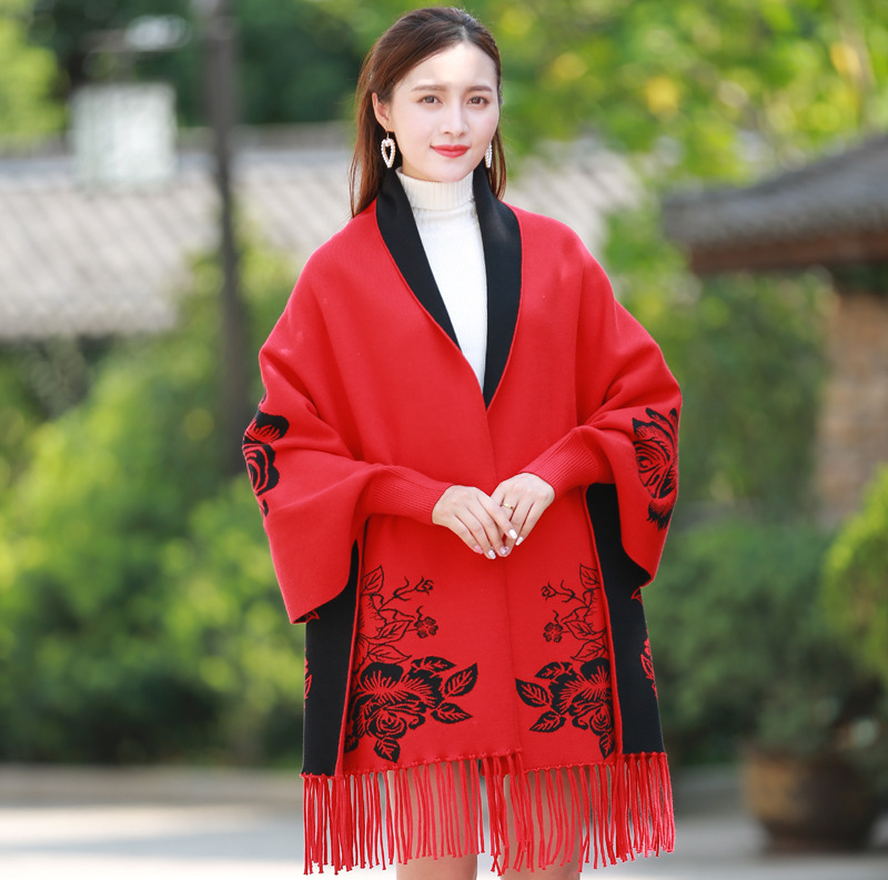 2018新品披肩斗篷披风女外搭加厚超大冬季流苏围巾外套两用