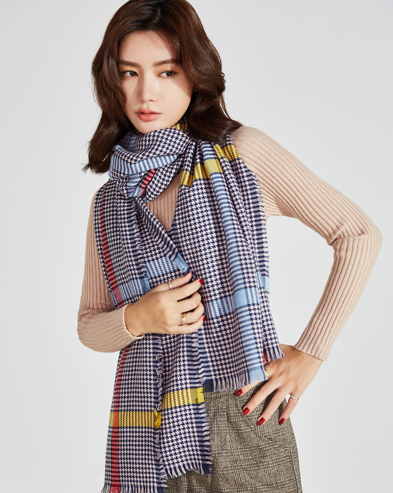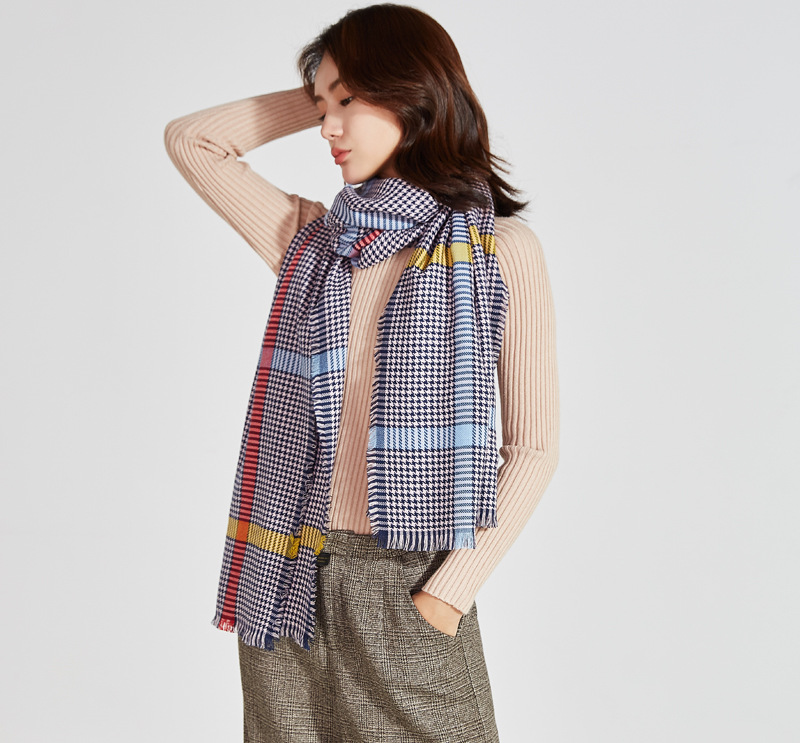 2018千鸟格围巾女秋冬季羊毛披肩空调房英伦韩版格子百搭加厚围脖