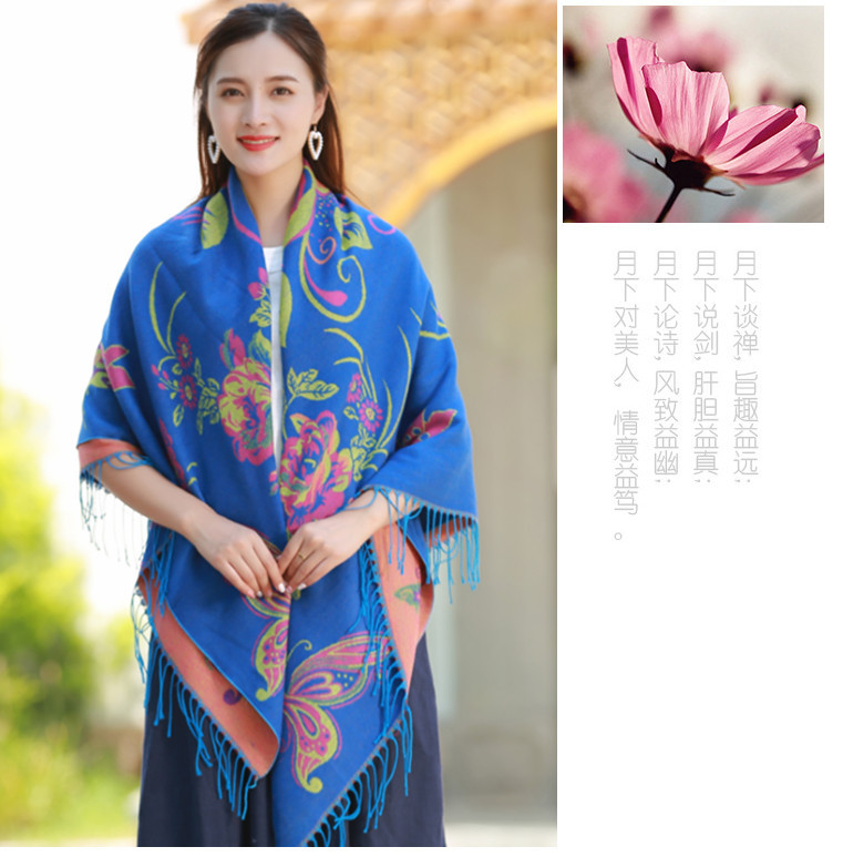 蝴蝶大方巾丽江披肩民族风围巾批发秋冬保暖青海旅游两用披肩
