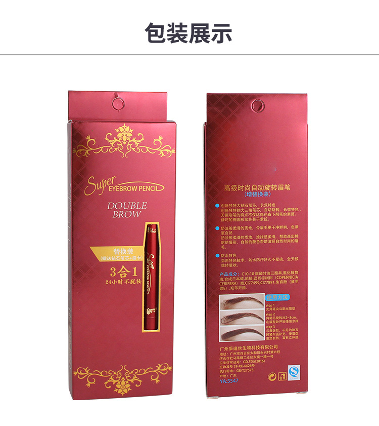 厂家直销 三合一自动旋转双头眉笔送替换笔芯送眉卡 眉笔套装