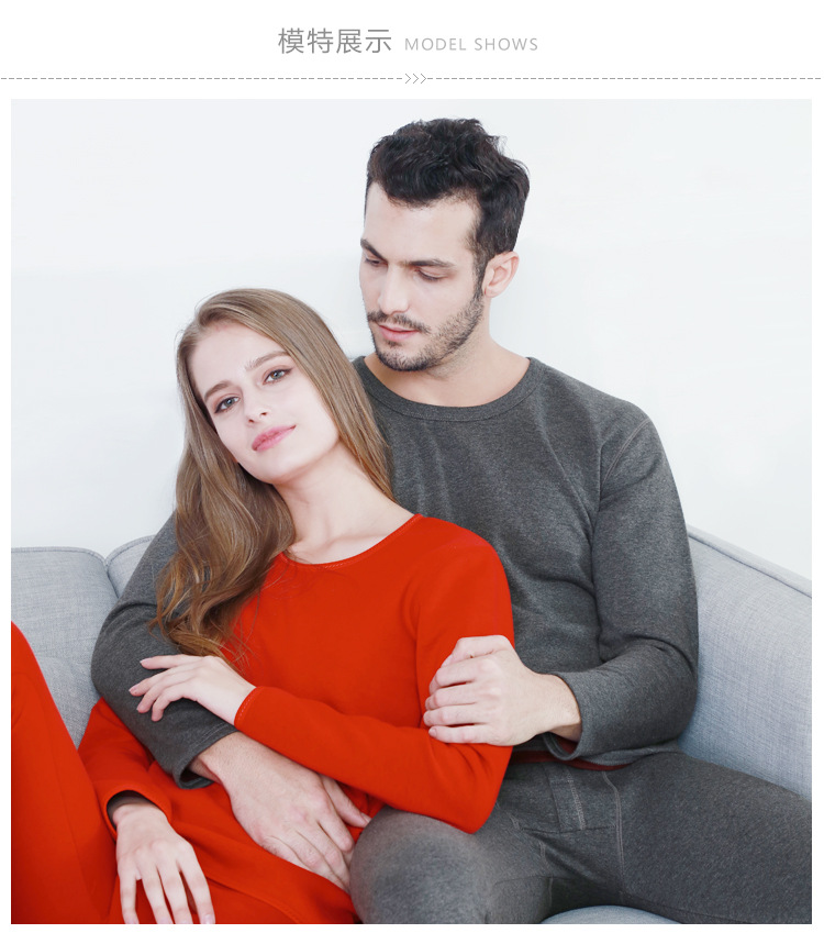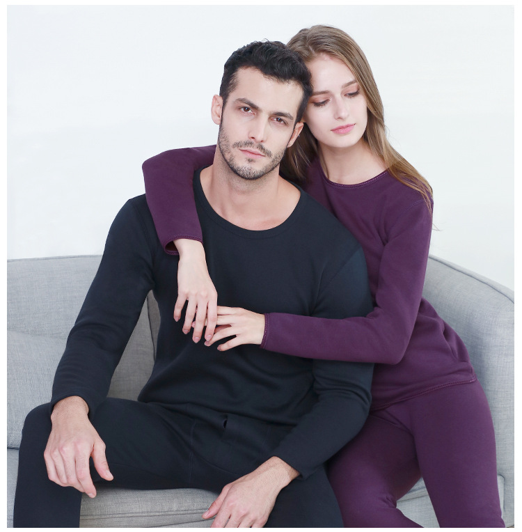 新款男士保暖内衣加绒加厚青年男士纯棉套装圆领秋衣秋裤女士