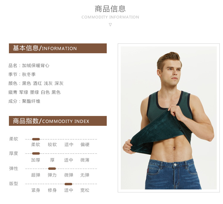 秋冬新款男士保暖背心圆领修身打底加绒加厚青年保暖内衣