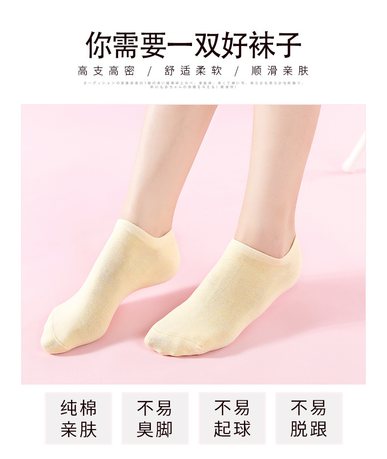 俞兆林春夏新款女士纯色棉袜五双混色短袜 休闲款多彩学生船袜